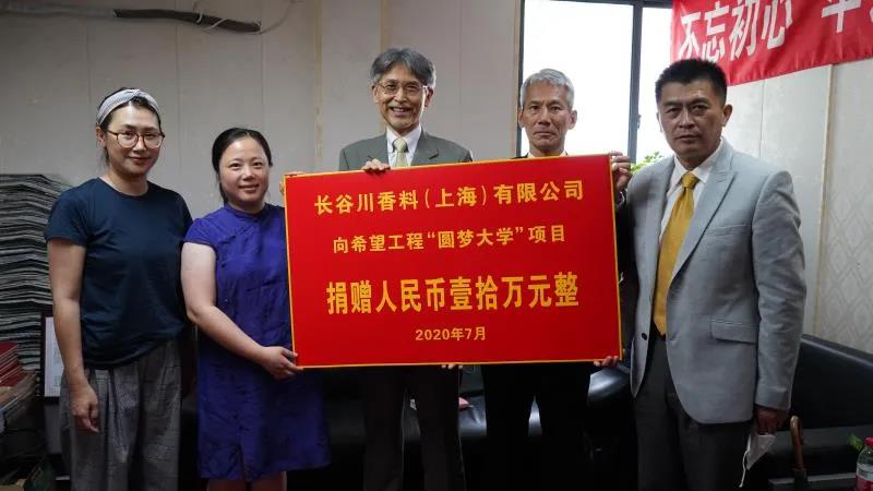 今年适逢长谷川香料(上海)有限公司成立20周年,董事长成田正人、总经理和田均等一行日前来到上海青基会,捐赠10万元资助圆梦大学项目。