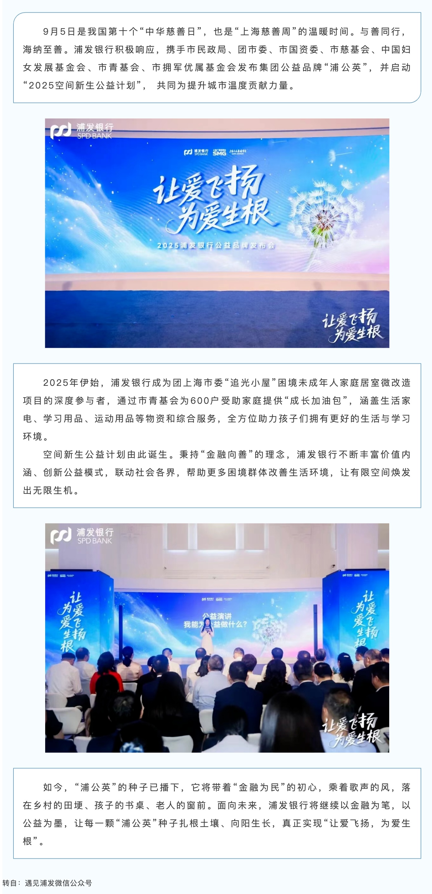 以金融温度播撒向善种子,浦发银行“浦公英”公益品牌温暖启航