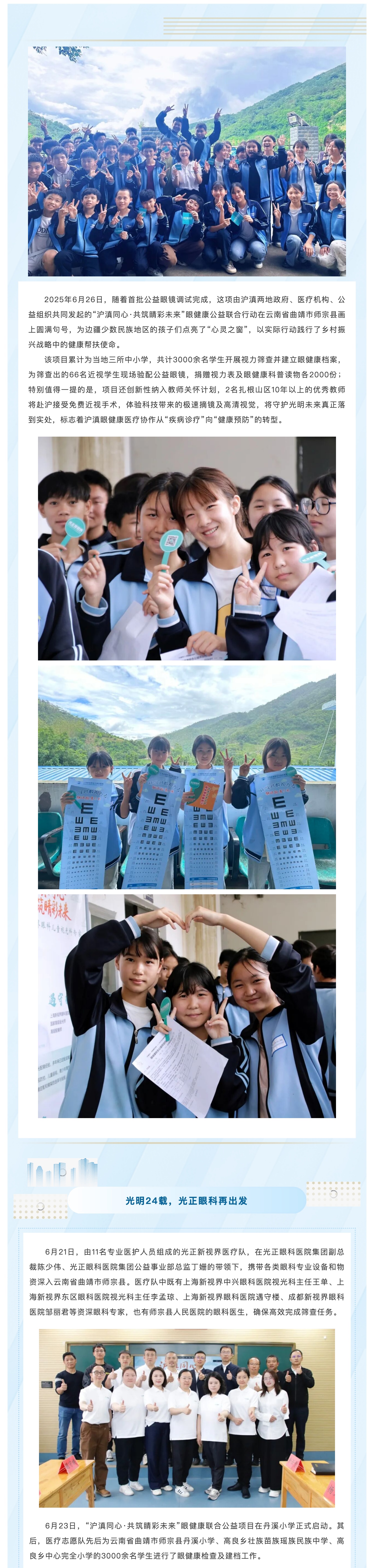 沪滇同心·共筑睛彩未来 | 2025年云南省曲靖市师宗县眼健康联合公益项目圆满完成