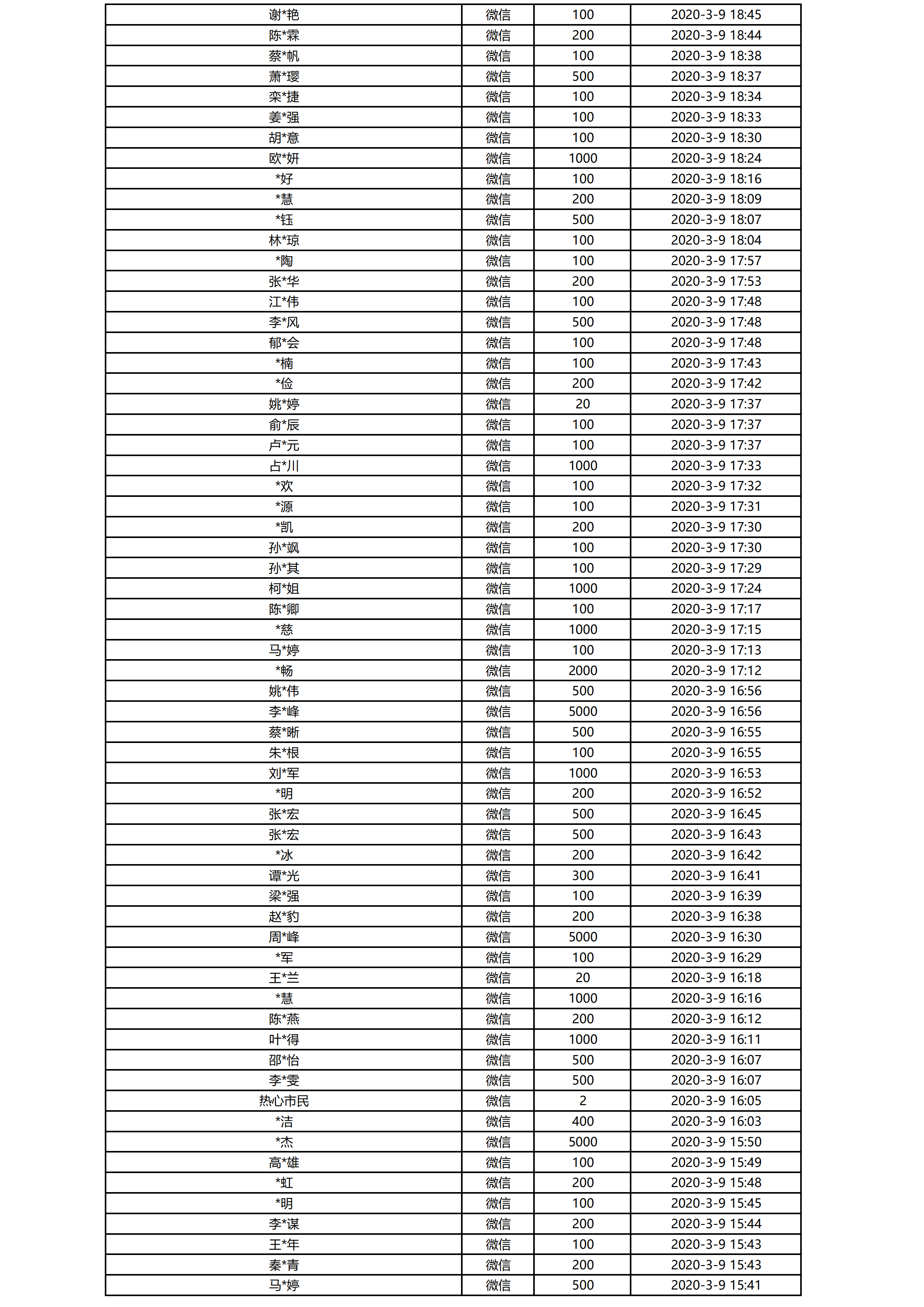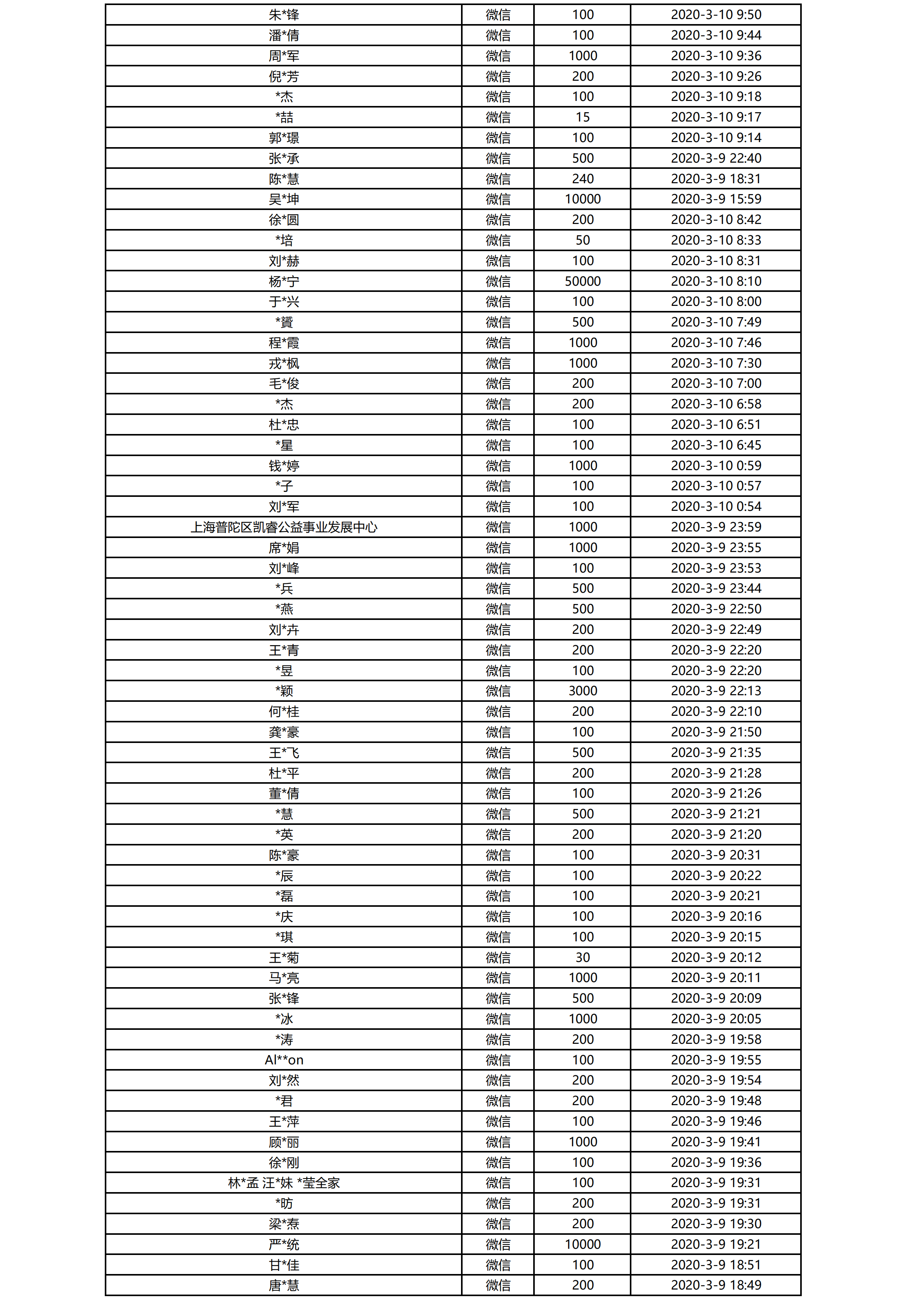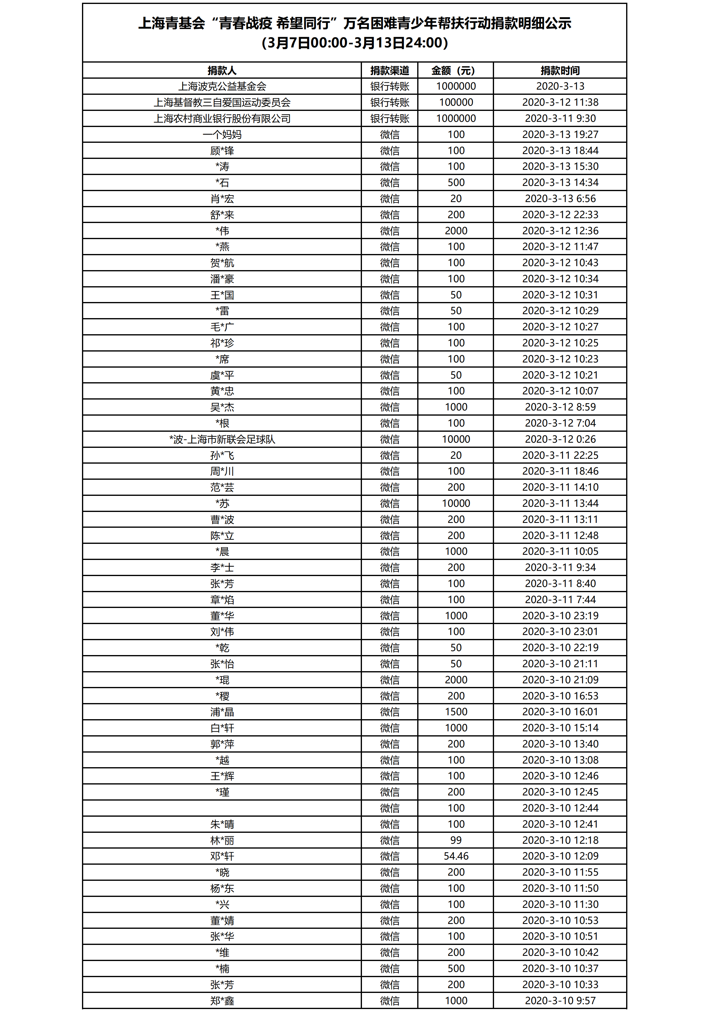 “青春战疫 希望同行”万名困难青少年帮扶行动捐助明细公示(3月7日-3月13日)