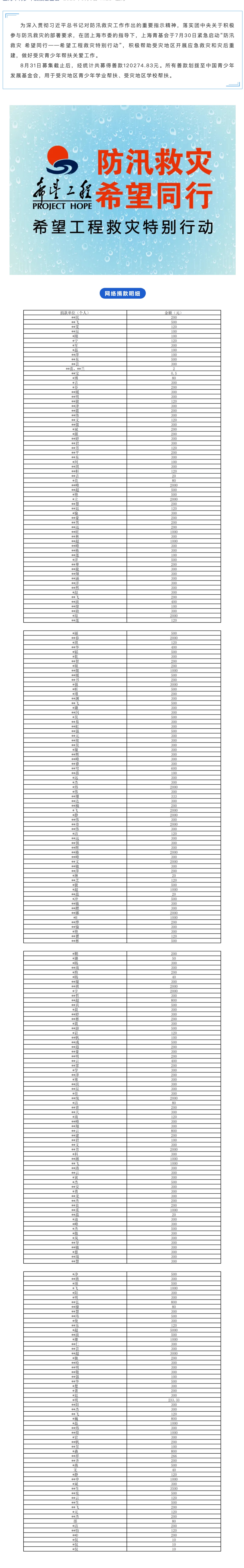 防汛救灾 希望同行——希望工程救灾特别行动公示